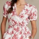 〈フローラル リネン ラップ ブラウス 600レッド〉