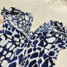 定番人気の上品なアナイのカシュクール半袖ワンピースです。ネイビーとホワイトの総柄プリントが特徴の半袖ひざ丈ワンピースで、春夏にぴったりの素材感。ウエストのリボンの様なデザインが可愛らしく素敵です。サラッとした生地感で、涼しく快適にお召し頂けます。