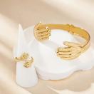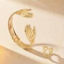 超お買い得490円★2個のパームエンバランスオープニングリングブレスレットセット | ゴールドプラチント調整可能な女性用