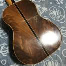 私見ではトップはスプルース、バックはコア、サイド&ネックはメイプル、指板はエボニー、ホールロゼッタとバインディングはコアと思われます。