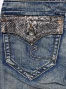 ポケットフラップに立体的な加工のレザー素材によるパイソン蛇柄が目を惹きます