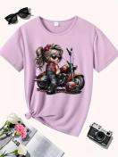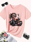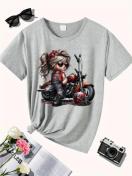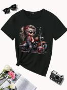 レディース ブラック モーターサイクル グラフィック Tシャツ ハートデザイン カジュアル 裏起毛 オールシーズン 伸縮性 通気性