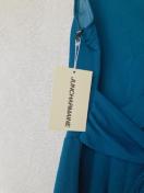 ターコイズブルーが大人っぽくて素敵な色合いです。ラップスタイルとノースリーブデザインが特徴です。