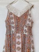 エスニック柄、花柄ストライプのウエストにシャーリングの入ったノースリ ワンピースとインナーキャミソールの2枚セットです。
