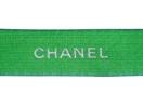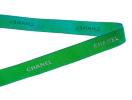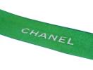 シャネルのラッピングリボンです。2017年のホリデーシーズン限定で使用されていたリボンになり、 全5色(赤・青・黄・紫・緑)の中から、こちらはグリーンになります。光沢のあるリボンに、シルバーに輝く「CHANEL」のロゴが6.5cm間隔でプリントされており高級感があります。本来は1巻25mになっていますが、1m単位の切り売りなので、ご希望の長さをお申し付けください。ギフト包装のラッピング用途はもちろん、手芸材料としてハンドメイド アクセサリーにリメイクするのもオススメです。