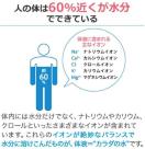 人体の水分に近いイオンバランスと浸透圧で、体に負担をかけずにすばやく吸収される飲料です。水分補給に最適で、スポーツ時や入浴後、発汗時などにおすすめです。