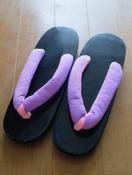 オマケでお付けする下駄は黒にラベンダー色とピンクの柔らかい鼻緒です。