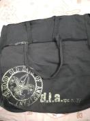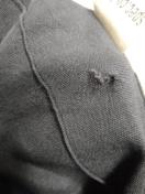 何度か使用したので穴、縫いつけ取れ、ファスナー壊れあり