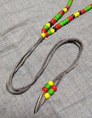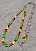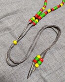 20数年ほど前に原宿都のインディアンジュエリーショップにてラスタカラーに組んで頂いたビーズネックレスになります。