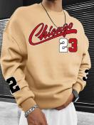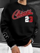 メンズ シカゴ23 グラフィック スウェットシャツ - ソフトポリエステル、カジュアルルーズフィット、ラウンドネック、ブラックにレッド&ホワイトプリント、ストリートウェア&カジュアルスタイルに最適