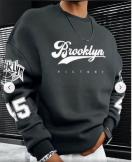 メンズ カジュアル ルーズフィット「ブルックリンビクトリー」レタープリントスウェットシャツ - ベージュ&ブラック&ホワイトグラフィック、100%ポリエステル、ラウンドネック、手洗い専用