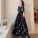 ドット柄ロング丈ワンピース