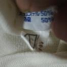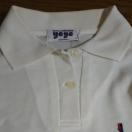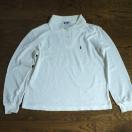 コットン混紡素材のホワイト長袖ポロシャツ。