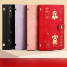 貯蓄プランナーバインダー 100枚収納 予算トラッカー 現金オーガナイザー エンボス中国字 ブラック パープル ピンク レッド 財務目標 金管理 貯金バインダー