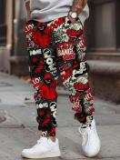 メンズ3Dキャラクタープリントジョガーパンツ、ドローストリングウエストとポケット付き - カジュアルで快適なポリエステル製アウトドアスウェットパンツ