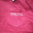 深い落ち着いた赤色、左胸ポケット、裾が後ろが少し長くなっていて、デザインが凝っています。