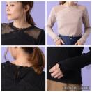 一部シースルーになったレースが切替のデザインのリブロンT。ハイネックレースと透け感が女性らしい印象です。身頃はリブ素材なので伸縮性もあり着心地抜群です。1枚で様になるロンTですが、これからのシーズンはカーディガンやジャケット、アウターのインナーにぴったりな1枚です