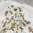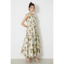 高い位置からの切り替えと裾に向かって大胆に広がるティアードデザインがスタイルアップさせながら女性らしさを十分に引き出してくれるワンピースです。