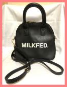 ミルクフェドのかわいい2way合皮ロゴミニボストンショルダーバッグです。