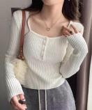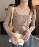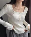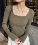 胸元のボタンがさりげないアクセントになり、デコルテをきれいに見せてくれるスクエアネックもポイントです