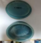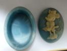 ミニーのカメオ風デザインが施された青とクリーム色のアクセサリーボックス。