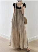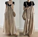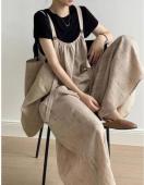 オーバーオール サロペット ロング紐 オールインワン パンツ ベージュ系 大きいサイズ