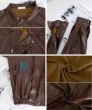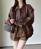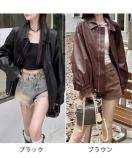 トレンド感たっぷりのレディースドロップショルダージップアップPUレザージャケットです