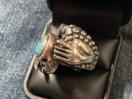 説明/スカルモチーフのリングです。ターコイズつき。925刻印あり。ゲージ棒ではかったところ、サイズは19号でした。とにかく迫力があってかっこいいです。使用に伴う傷や汚れ、くすみなどありますがまだまだお使いいただけます。かっこいいですよ。おすすめ。ケースは撮影用ですので付属しません。予めご了承下さい。