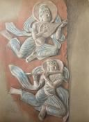 杉山寧の額装用図版、雲崗9窟 飛天像と薔薇です。残念ながら原画ではなく、コロタイプ印刷です。