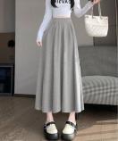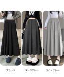 着やせスカート無地/ウエストゴムお洒落/ミモレスカート脚長