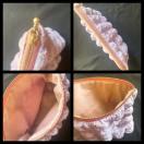 ピンクのリボンテープにビンテージゴールドのYKKジッパーもアクセントになっています☆。.:*・゜