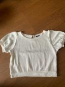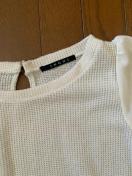 INGNIのホワイト半袖ニット、メッシュ編みデザインで涼しげな印象。