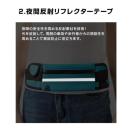 夜間の安全性を高める反射テープ付き+視認性の高い蛍光カラー。