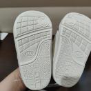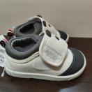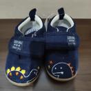 恐竜刺繍が特徴のネイビーのベビーシューズ、パンダのデザインのホワイト、サイズ14cm。
