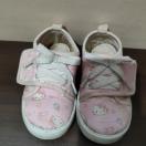 ハローキティのデザインが可愛いスニーカー、マジックテープ付きで履きやすい。