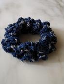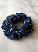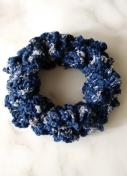 ネイビーとシルバーのミックス糸でダブルフリルのシュシュを編みました。