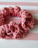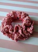 コーラルピンクミックス、オレンジピンク系の糸でダブルフリルのシュシュを編みました。