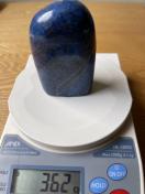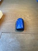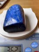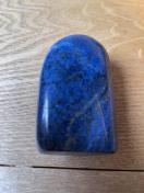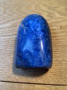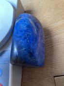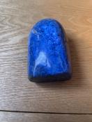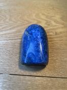 半円形の長い卵のような形をした、置き心地のいいラピスラズリです。表面に、銀河のような、濃淡のあるフェルメール色彩の複雑な模様が描かれているのが特徴です。机の上のインテリアとして最高です。周囲17センチ、高さ9センチ。362g.アフガニスタン産。締切日時