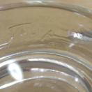 ハートのデザイングラスです。台座に置かないと倒れるデザインで、台座にサインが刻印されています。