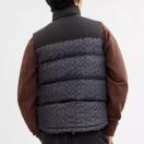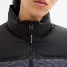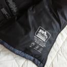 シグネチャーがプリントされたナイロンとクールなカラーの暖かいダウン。