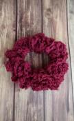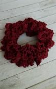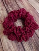 ボルドーレッドのレース糸でダブルフリルのシュシュを編みました。