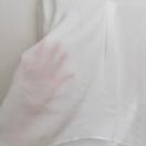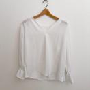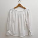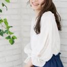 ふんわりとしたボリュームスリーブは、スリットからちら見えするドットシフォンが繊細さを演出