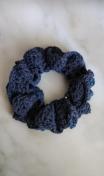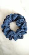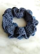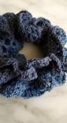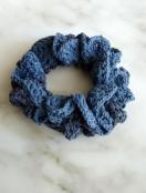 デニムのような2色のブルー糸でダブルフリルのシュシュを編みました。