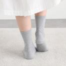足裏アーチ部分にはクッション編みをほどこしているため、フラットな部分と比べて約3倍の厚みがあり、履くことで物理的に足裏アーチ部分をサポート