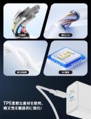 【Type-C+Lightning 一体型急速充電】:PSE認証済み双方向可逆充電技術 Type-C+Lightning 一体型充電器セットなので、Power Delivery規格に対応しており、最大3A/ 20Wの高速充電に対応し普通のケーブルより早いスピードで充電が可能で、 効率的に充電時間を節約します。Apple MFi認証を受けた2mのiphone 充電ケーブルが付属しており、iOSがアップグレード対応。最大3A急速充電、採用された高品質な銅線は電気抵抗が低く、iPhone16 Pro Maxであれば、たった30分間の充電で60%までチャージ。
