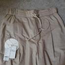 シャカシャカ感な汗すいにくい木地かなと思います。1度着用ですがしわがつきやすいようです。前両ポケットあり。前ファスナーなし。後ろポケットなし。裏地なし。ウエストゴムでひもあり。締切日時