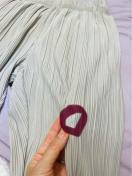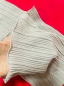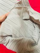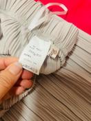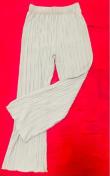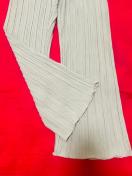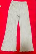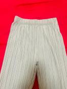 軽やかな薄色のプリーツパンツ、快適な着心地です。