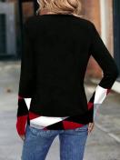女性用エレガントなカラーブロッキング&斜めストライプ柄の長袖ブラウス - ラウンドネックプルオーバーシャツ、黒/白/赤/グレー、中伸縮性レギュラーフィットトップ、春秋カジュアル・セミフォーマルウェア