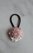 ハンドメイド スパンコール編みヘアゴム ピンクホワイト