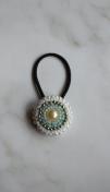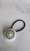 数種類のビーズを使って、直径3cm位のくるみボタンにビーズ刺繍を施し素敵なヘアゴムを作りました。